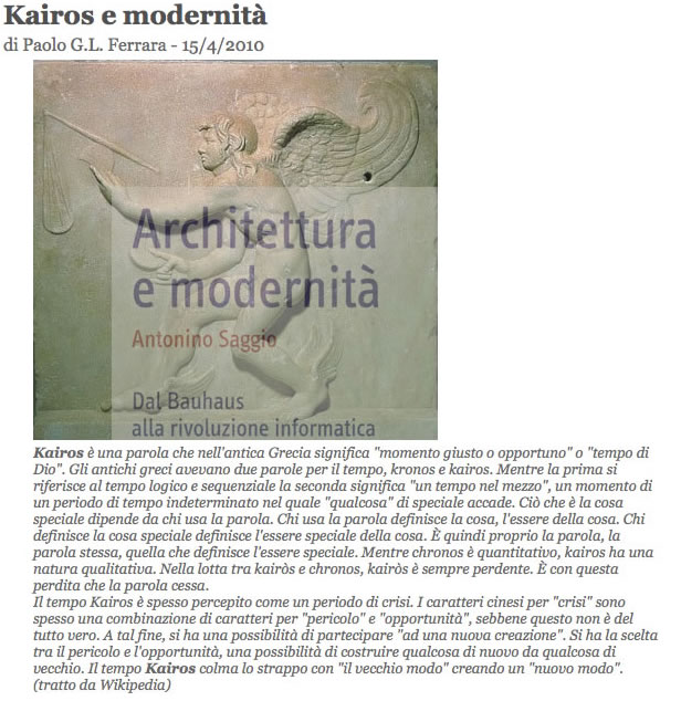 Una serie di ragionamenti e link importanti sula questione sotto dibattuta http://www.youtube.com/watch?v=VzFpg271sm8 Yi Zhou, artista digitale, http://www.yi-yo.net/ Problema della percezione .. due video interessanti e problematici >> Ambrosi 2009 Caro Ivo, Nino Saggio oggi si è parlato di protesi ... strumenti per saltare o per lo meno avere prospettive-proiezioni al di la del nostro normale sentire lo spazio. " ... quando Tzu-Gung viaggiava nelle regioni a nord del fiume Han vide un vecchio che lavorava il suo orto. Post di Bregasi 2009
