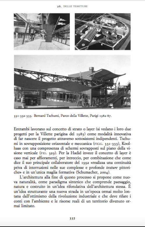 Il punto di passaggio Alla fine della lezione si è svolto un interessante dibattito. Uno dei punti sollevati è come esistano layer invisibili: quello delle reti e delle informazioni. Mi muovo seguendo trip advisor, non perché vedo. Questo ragionamento ha condotto alla compresenza, in particolare nel nostro contesto europeo della compresenza di molti layer. Questo ha implicazioni con le bolle personalizzate.. concetto di cui trattare pi tardi nel concetto di spazio . Un secondo filone del ragionamento ha spinto a riflettere al rapporto tra layer e progettualità: per esempio è fuor di dubbio che il layer è uno "strumento principe del decostruttivismo degli anni Ottanta Novanta". E questo vale tanto dal punto di vista architettonico che filosofico. su questo si tratta in architettura e modernità.
