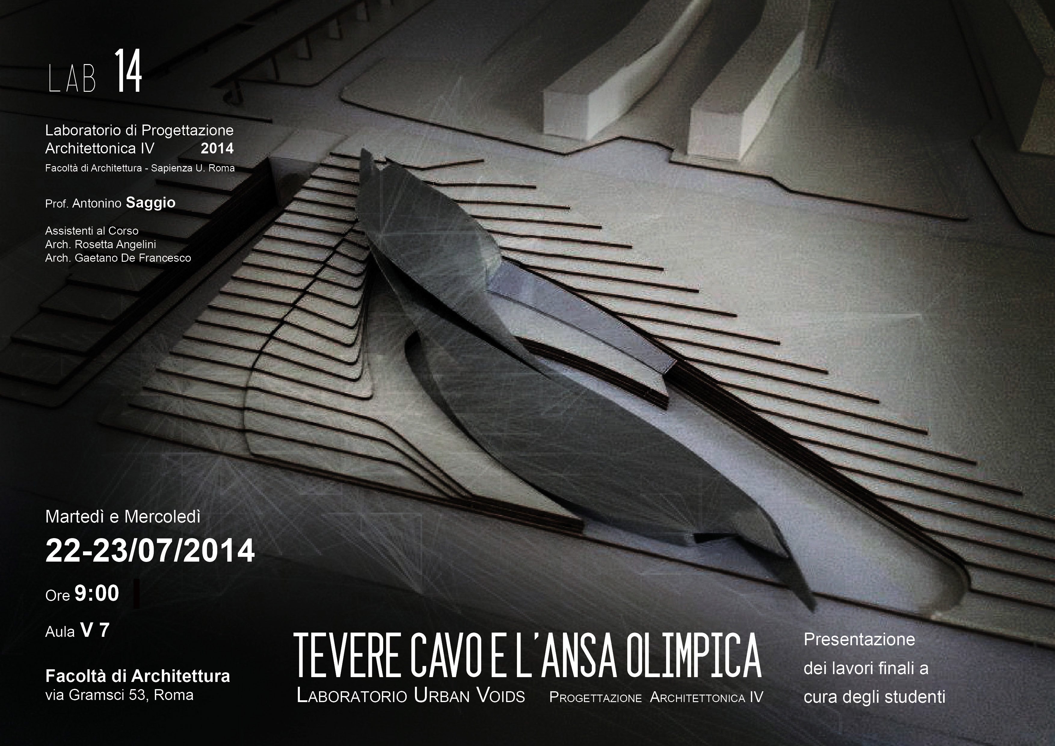 Nome e Cognome studente, 1.Urban Voids (o Numero corrispondente) Laboratorio IV D, prof. Antonino Saggio, con il nome del Consulente arch. R. Angelini, G. De Francesco Sapienza Università di Roma Fac. di Architettura, 2013.
