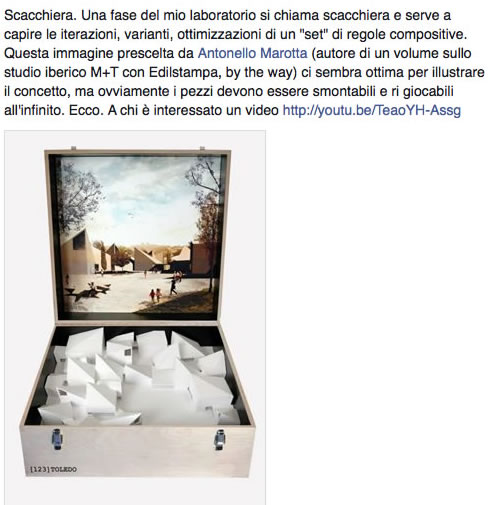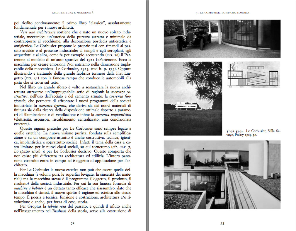 la formazione della scacchiera con un edificio comparabile scelto all'interno del libro "Architettura e modernità"