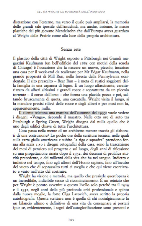 La distanza tr voi e Wright è siderale, ma comunque colmabile. Infatti Wright è umano come voi, ed è un architetto e voi siete studenti in una scuola professionale di architettura (non siete in un conservatorio e in una scuola di iloti aereonautici).