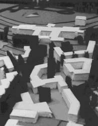 Pretende criar espaços limitados por edificios de diferentes alturas e até funções, denominado - patios semi-colectivos, que de serta forma sao enriquecidos com um teatro aberto afundado, uma sala polivalente e outros elementos paisagísticos.