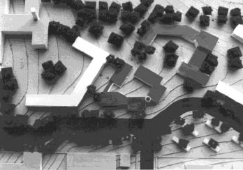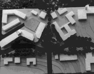 Concentrar as funções mais ao serviço do público junto da estrada principal, funções de cultura integrados no verde e como núcleo do projecto e, habitações nos extremos mais calmos da área do projecto.
