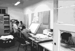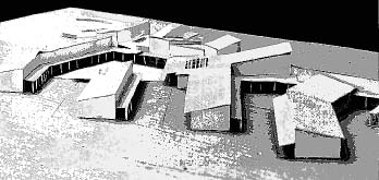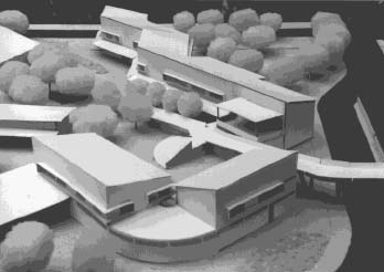 Centre culturel composé d'ateliers d'oeuvres artistiques: bibliothéque, salle de réunion, station autoroutiére, pont piétonnier.
