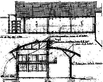 De um modo geral o sistema é puntiforme (pilares de alvenaria de blocos de cimento), estrutura de cobertura em perfís metálicos, paredes de alvenaria e coberturas inclinadas e curvilíneas em chapa metálica.