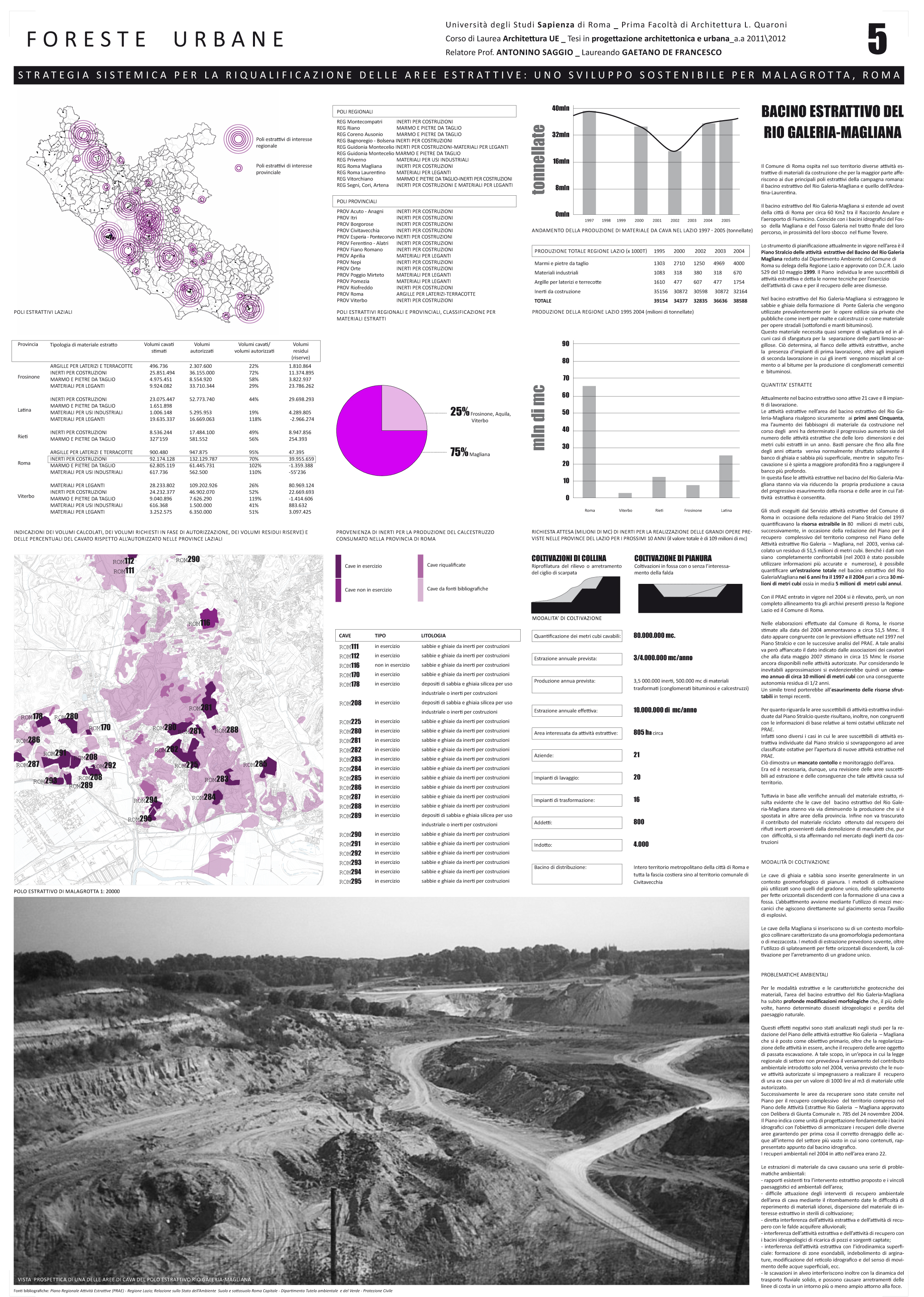 È da anni che riteniamo che un atteggiamento consapevole della ricerca progettuale e architettonica debba partire dalle crisi che sono attorno a noi piuttosto che dalla immediata “soluzione”, per quanto essa possa essere formalmente gratificante. Quindi, pensando a Roma, è difficile non affrontare il tema che tra poco diventerà assolutamente centrale: quello, come viene definito sulla stampa, di Malagrotta. Si tratta di un’area ampia come una città di medie dimensioni (il bacino estrattivo del Rio Galeria-Magliana è esteso per 6000 ettari, la limitrofa città di Ostia si estende su una superficie di circa un quarto - 1530 ettari - ed ha una popolazione di 85mila abitanti). L’area è localizzata in un cuneo tra la via Aurelia a Nord e l’autostrada Roma-Fiumicino a Sud; non lontano dall’aeroporto verso ovest e le propaggini dei colli Portuensi ad est. Un’area vastissima, dunque, quanto sconosciuta alla maggior parte dei romani eccetto per i ricorrenti allarmi dovuti alla saturazione delle discariche. Meno noto il fatto che Malagrotta faccia parte, appunto, di un enorme bacino estrattivo.