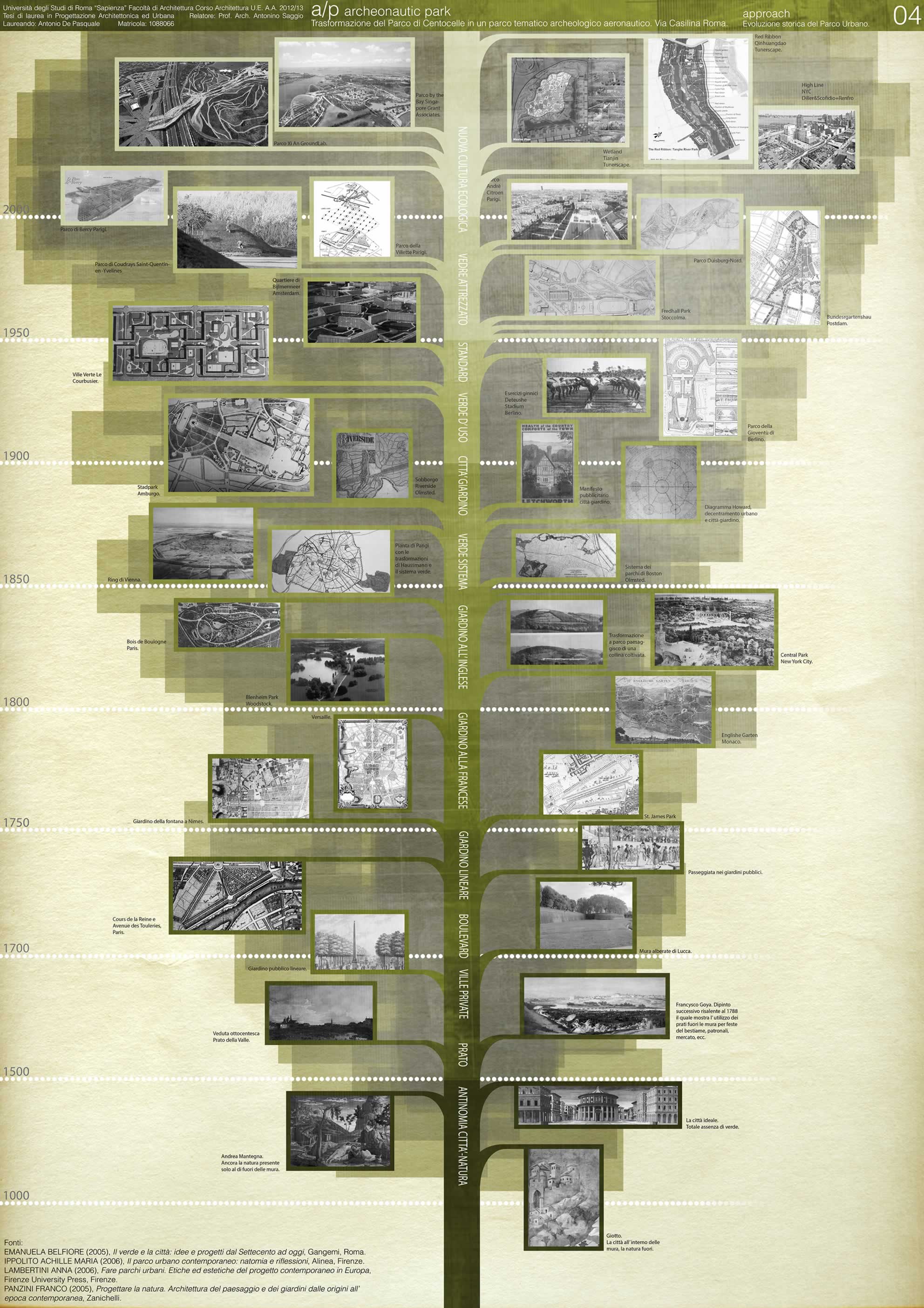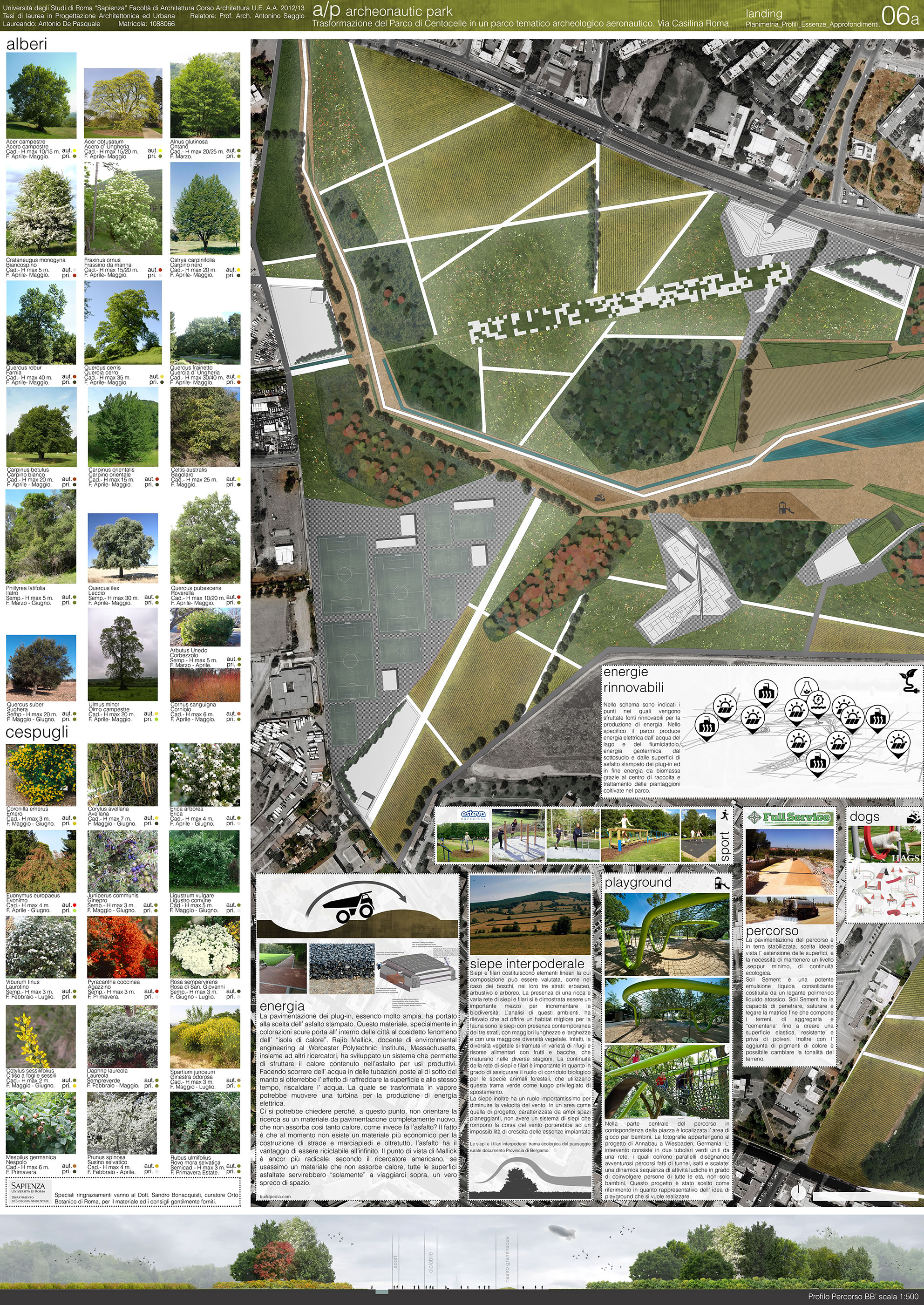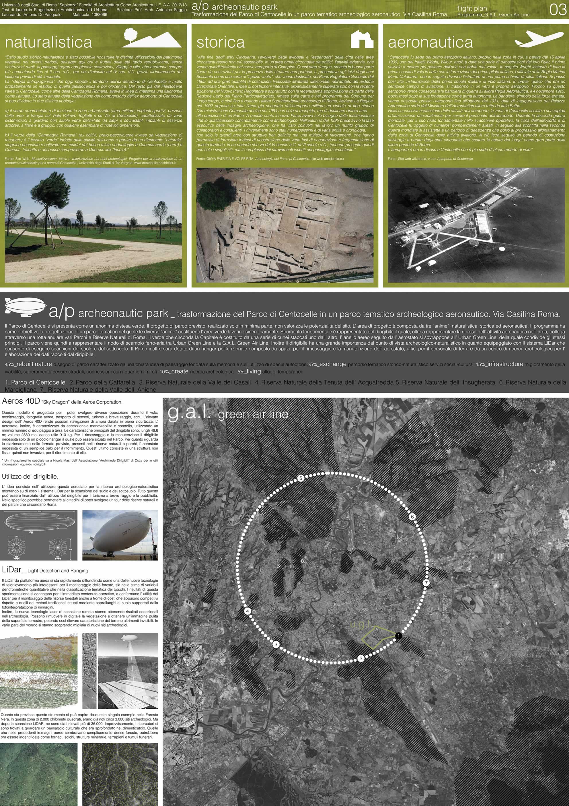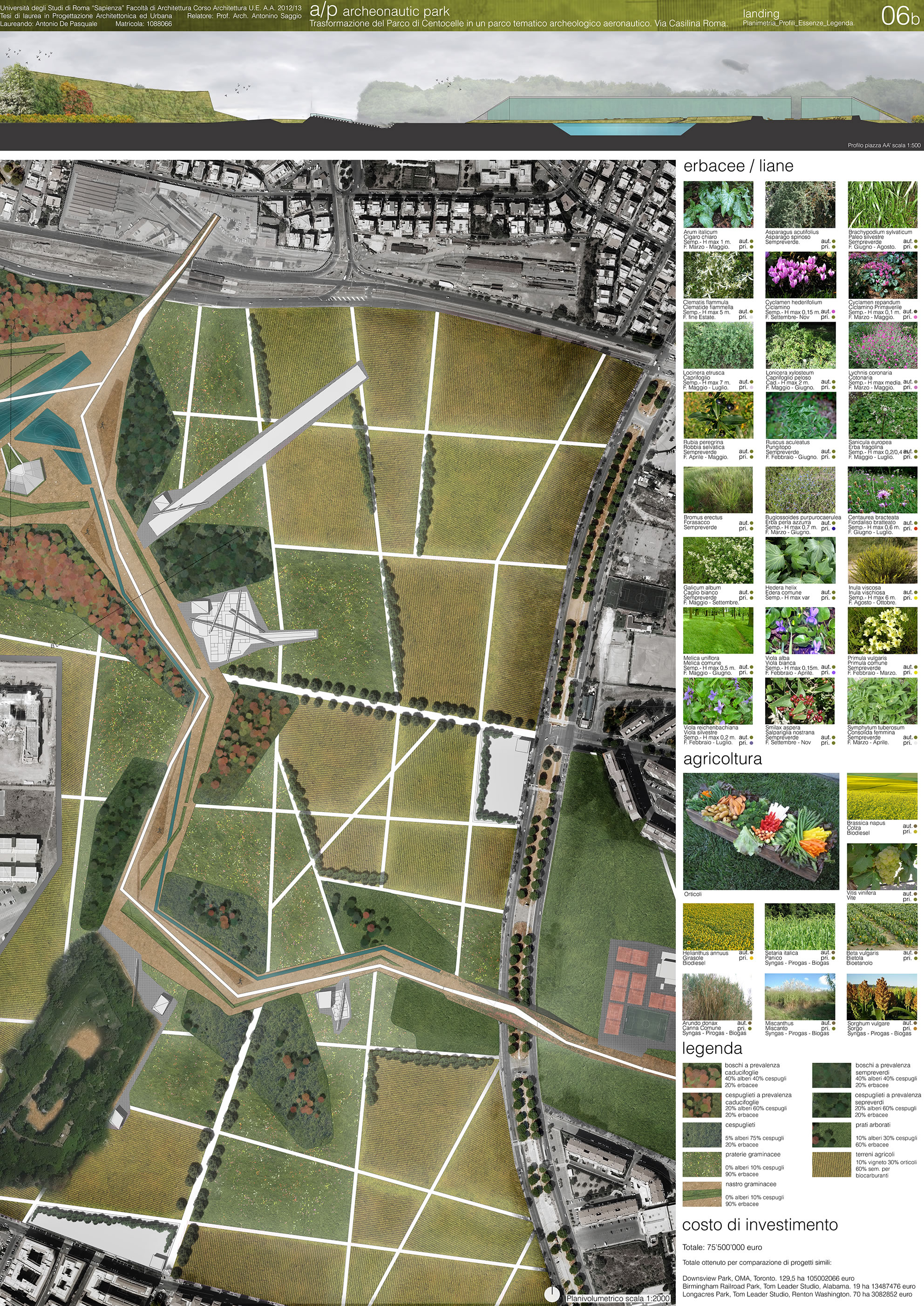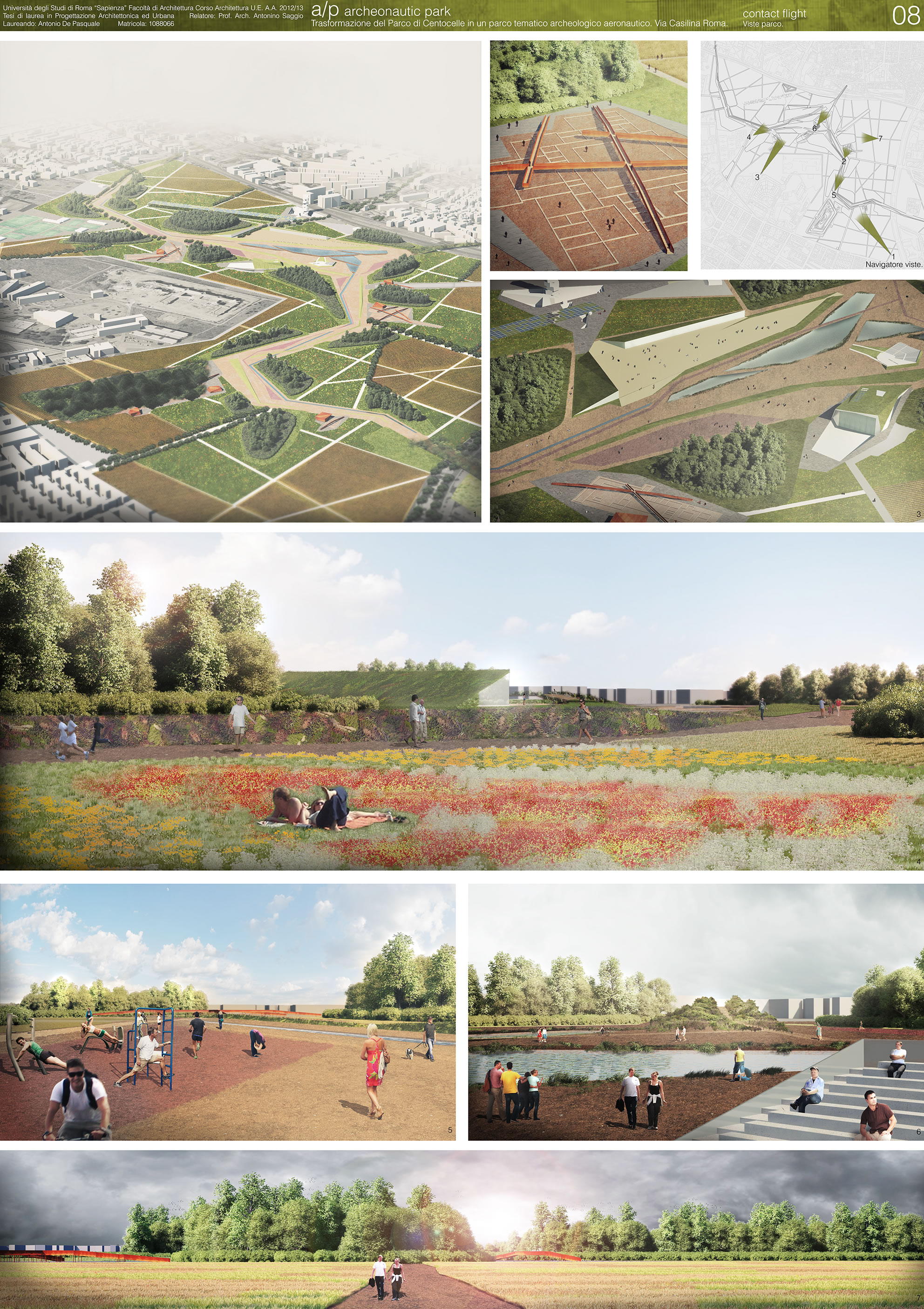 Trasformazione del Parco di Centocelle in un parco tematico archeologico - aeronautico. Via Casilina, Roma.