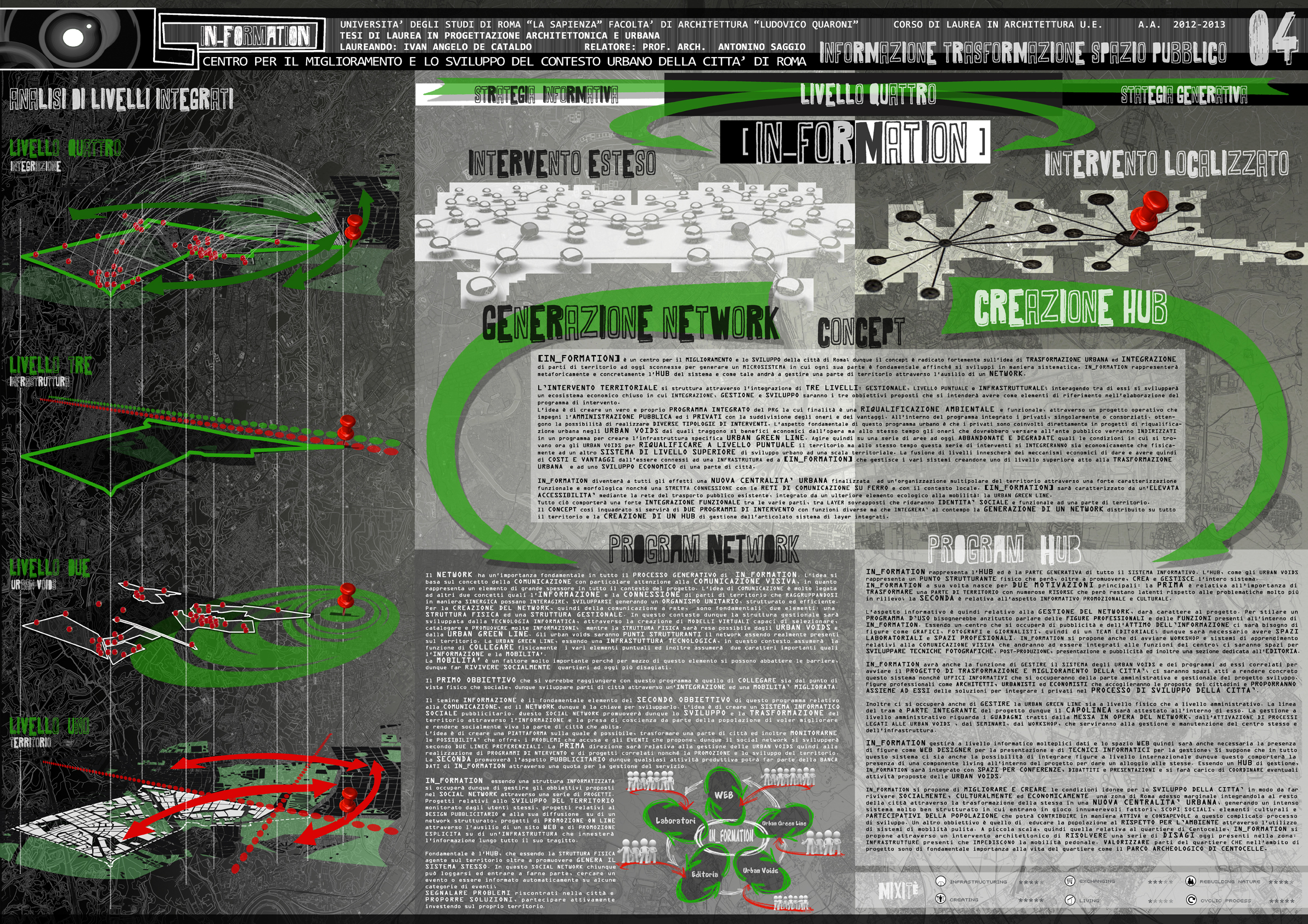 Il secondo livello di rilevanza del progetto è quello del programma. Pur trattandosi di un progetto di Mixitè e quindi anche con parti residenziali, commerciali e produttive la sua forza trainante è rappresenta dalla proposta di creazione di un centro per lo sviluppo dei processi economici, sociali, imprenditoriali, amministrativi e manageriali per il miglioramento e lo sviluppo del contesto della città di Roma. In_Formation si concentra sulle numerosissime aree ex ed edifici industriali abbandonati che come tanti relitti galleggiano abbandonati nella città. In_formation vuole essere la cerniera di un sistema che è tanto fisico quanto diffuso nel territorio attraverso la rete e i network. Non si tratta tanto quindi di un centro informativo di ciò che è stato fatto, ma di un centro propulsivo per la trasformazione urbana dell'esistete. Allo stesso tempo la localizzazione strategica all’interno dell’anello della Urban Green Line fa ipotizzare di usare il grande deposito tramviario ancora oggi esistente nell’area quale possibile ampliamento del Museo del Tram oggi molto compresso nei pressi della Stazione della ferrovia per Ostia Lido.