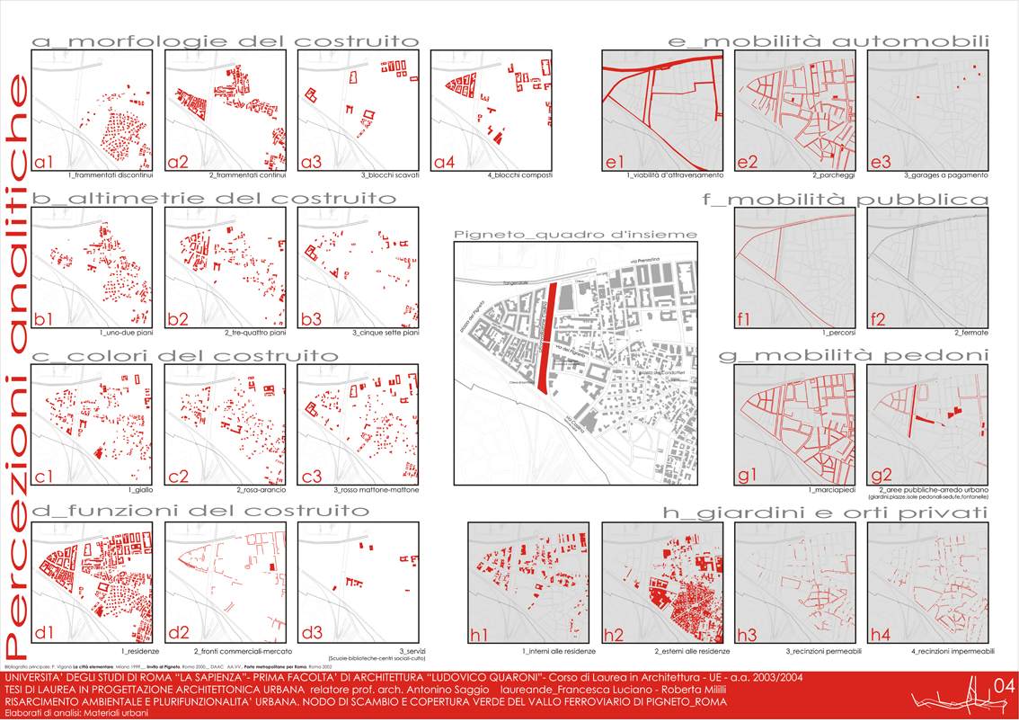del costruito, funzioni del costruito, mobilità pubblica), ogni