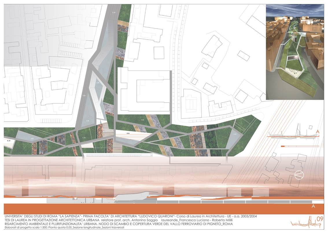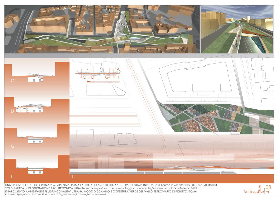 Nodo di scambio e copertura verde del vallo ferroviario