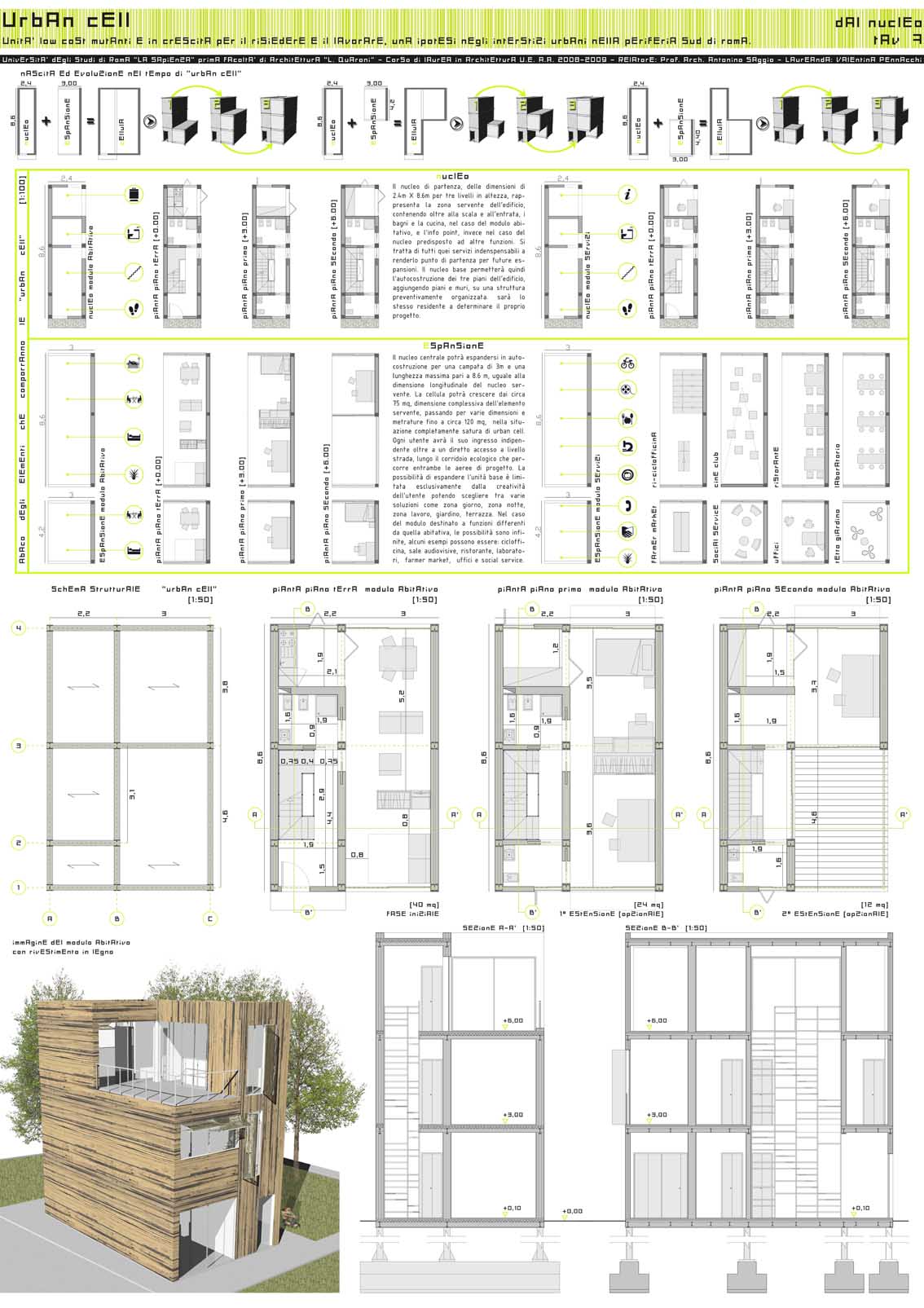 Unità low cost mutanti e in crescita per il risiedere e il lavorare. Una ipotesi negli interstizi urbani, nella periferia sud di Roma.