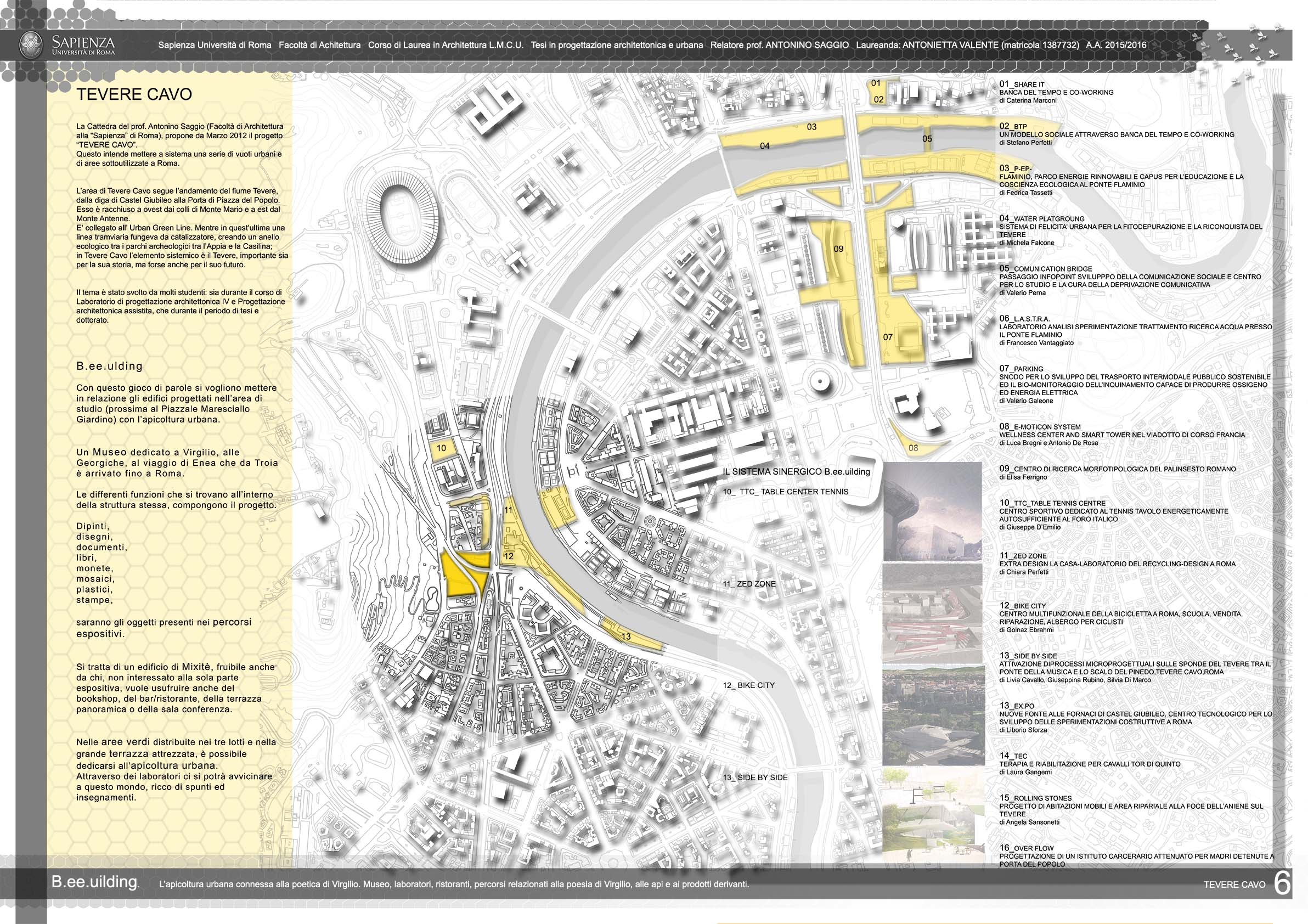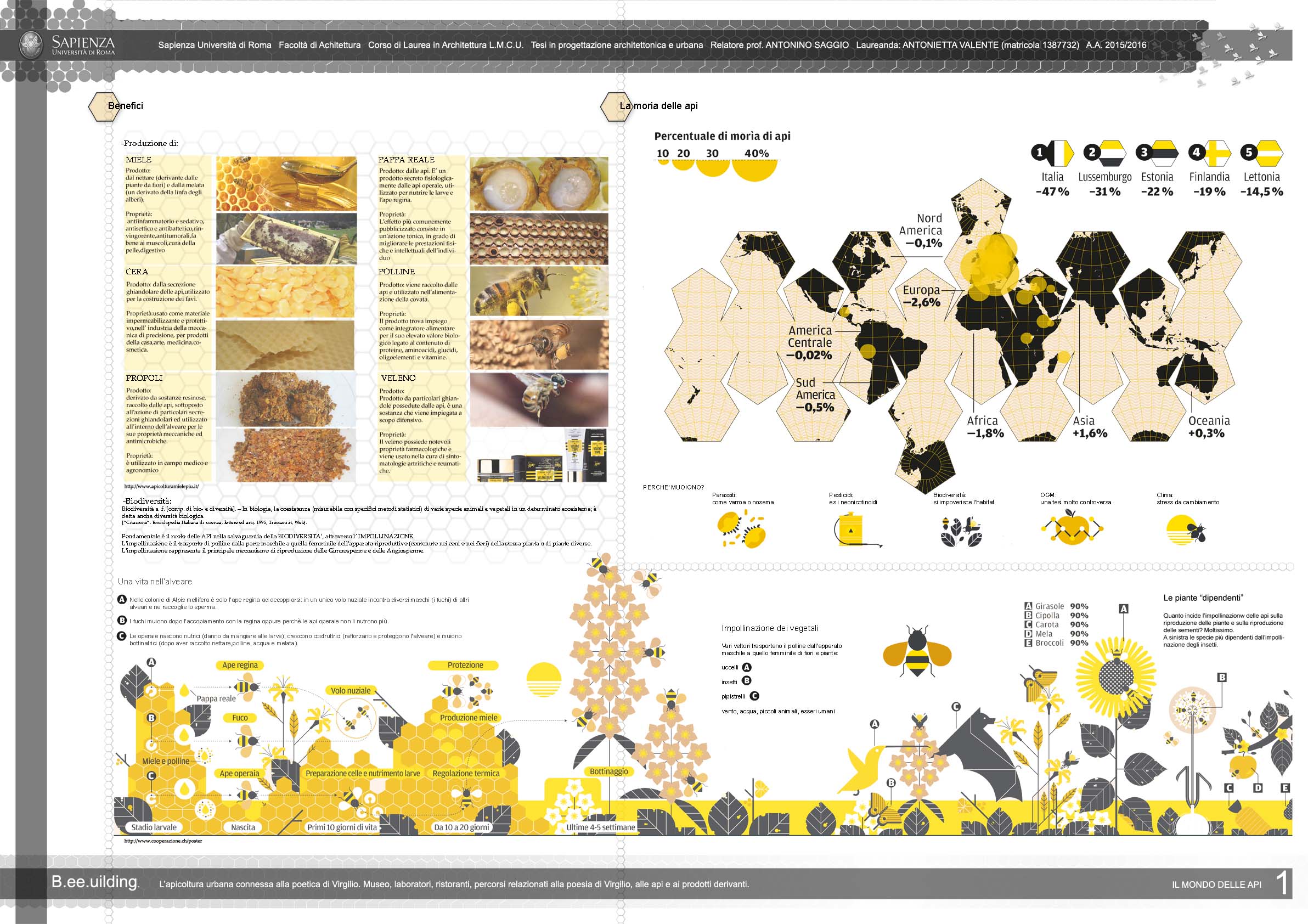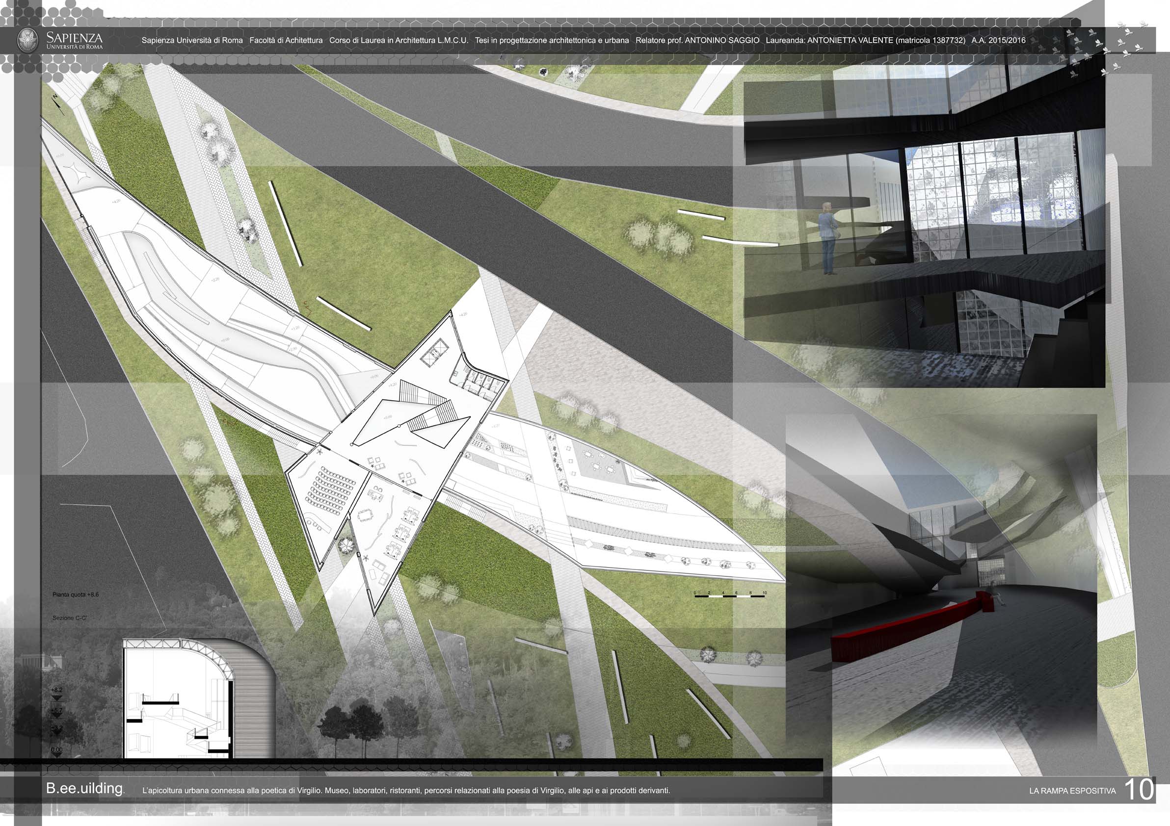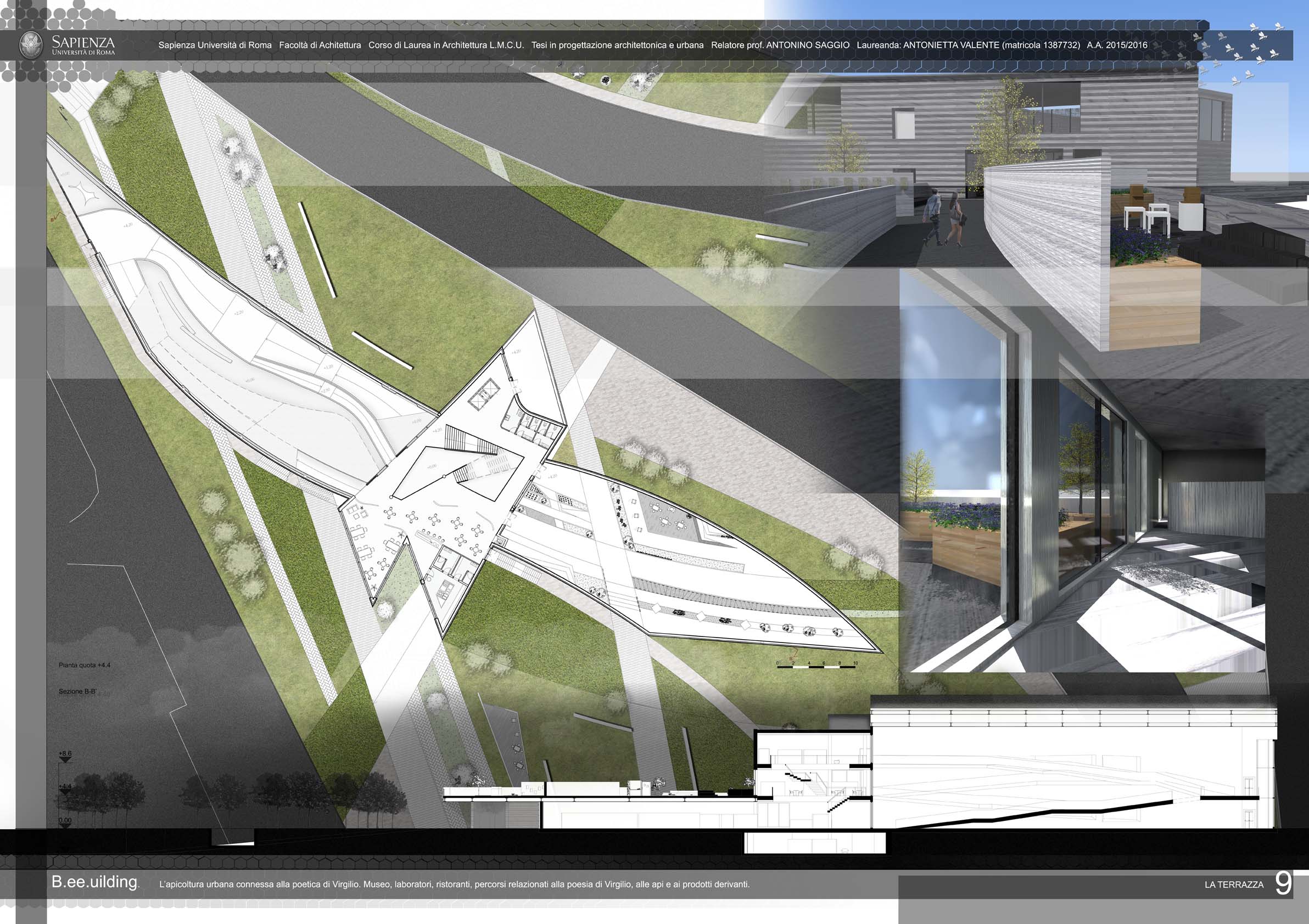 Il progetto si insedia in una area marginale, in una intersezione tra la collina di Monte Mario, l’inizio di Viale Angelico, il Tevere e il complesso di case popolari di Piazza maresciallo Giardino. Analizzando questa intersezione urbana, si è contemporaneamente riflettuto sul ruolo odierno delle api che, sempre più sospinte dall’uso dei pesticidi agricoli, si muovono in città. Allo stesso tempo, lo sviluppo dell’apicoltura urbana sta avendo uno sviluppo sensibile in diverse situazioni. Nasce di conseguenza l’idea di ideare un progetto che si incentri in questa attività. Approfondendo lo studio sulle api e sulle diverse componenti naturali e letterarie legate a questo insetto si è individuato nel poema del grande poeta latino Virgilio un importante precedente. Si è anche scoperto che in Italia vi è solo un museo dedicato al poeta latino e nessuno a Roma. Da questo intreccio nasce il programma del progetto. Un museo dedicato al poeta Virgilio ed in particolare all’Eneide e alle Georgiche e contemporaneamente all’apicoltura urbana. La localizzazione nei pressi del fiume Tevere sembra più che appropriata anche perche Enea arrivò a Roma risalendo il suo fiume.