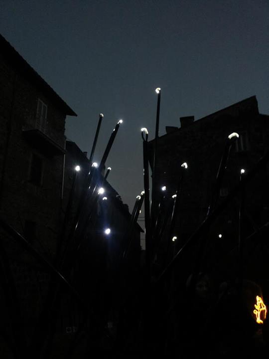 Gli alberi infatti, attraverso una attivazione di tecnologie interattive, si illuminano solo al passaggio delle persone. Sono muti, senza la volontà pubblica, ma si accendono quando questa volontà è presente.