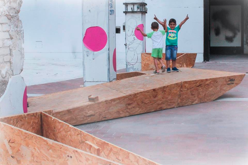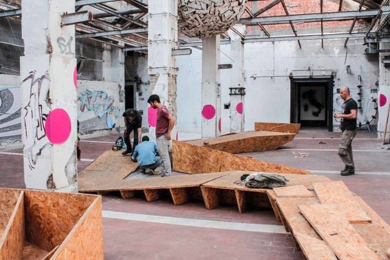 Il Maam, il Museo dell’altro e dell’altrove a via Prenestina 913 è la realtà artistica e il laboratorio sociale più fervido di Roma. Se Milano presenta il gold di Fondazione Prada qui nell’ex salumificio Fiorucci occupato da etnie diverse si dà vita ad uno straordinario mix. Si creano a poco a poco abitazioni decenti e spazi, centinaia di artisti donano opere spesso straordinarie. Cataloghi, trasmissioni televisive, un fantastico film su youtube. Ora anche Nitro group dona la propria opera e il proprio lavoro al Maam. L’evento è importante non solo per nITro, che si unisce a questo grande luogo e a questa storia, ma anche un poco per il Maam stesso. Infatti l’installazione è tra le prime che determina relazioni spaziali e non solo estetiche. La rampa di TreeIT zigzag tra i pilastri di un grande capannone e sembra essere sempre stata li. I bambini se la sono presa già aiutando nel montaggio, e quando si suona le persone si siedono e vi si appoggiano dandole nuova vita, la luce emerge dai sensori. Insomma un oggetto multitasking, bello e giusto, di cui siamo orgogliosi“.