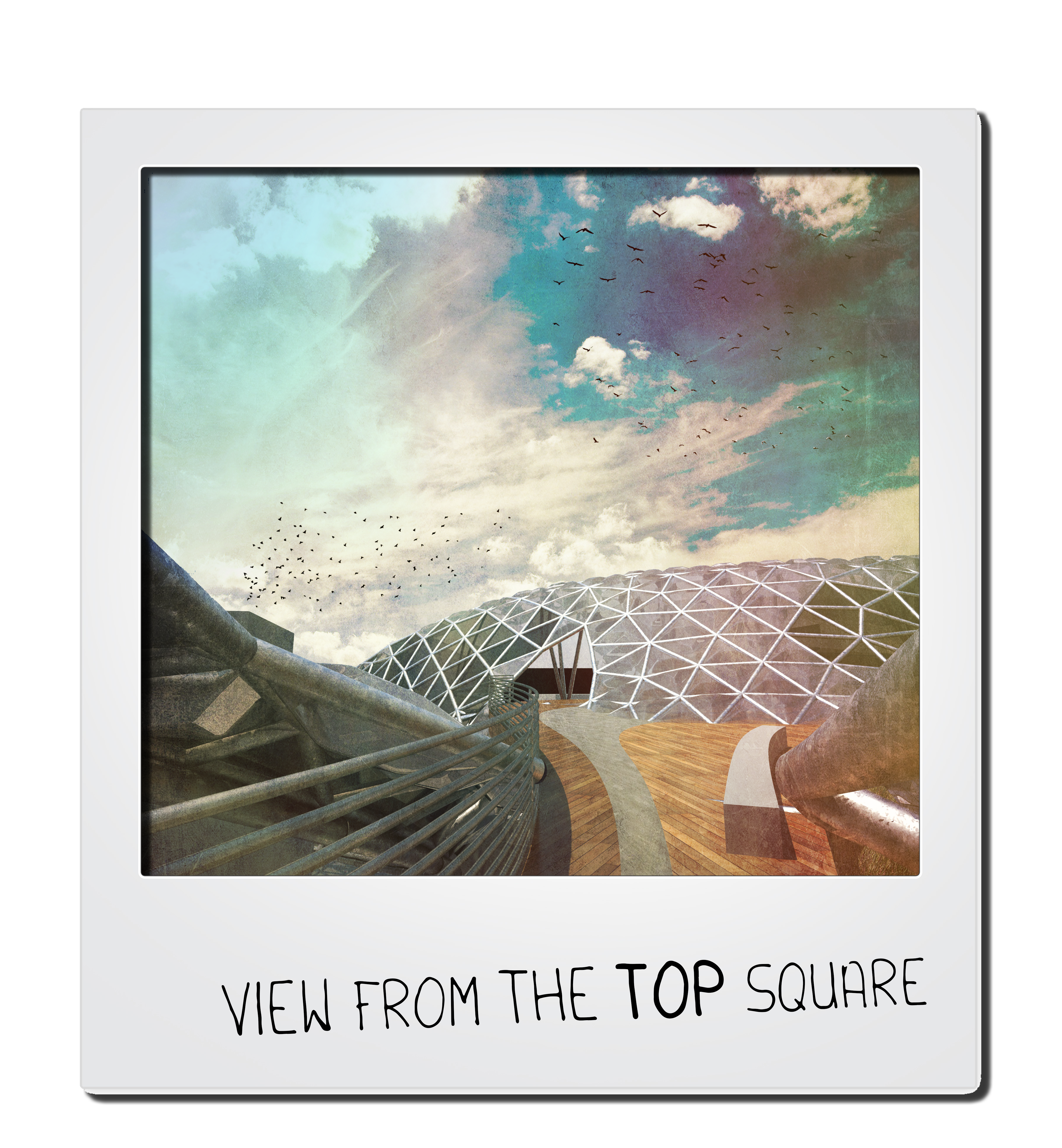 Upside Down Square is a structure that soars in the air with dynamism and vitality, embodying the promising growth of the city of Tirana precisely in those districts that have been developing in the last years. Upside Down Square project consist of a public space for socialization, allowing you to “fly” over the urban fabric and to understand the relationship that the district weaves with the wider urban context. The structure constitutes a technologic plug-in at the service of organic development of the residential neighbourhood and that solves and reorganize the tricky nest of the Electric service. At the same time, it fulfils the function of rainwater harvest – that can be reused for the grey water system of the buildings – and energy providing through a solar panels system. The road surface will be replaced with draining asphalt to guarantee that autumn rains won’t flood the streets and the commercial basements of the surrounding buildings. The in- between space is the formal and functional core of the whole project, hosting commercial area and pedestrian paths that lead to the external elevated Square. The project aims to be a help for the spontaneous and physiological development of the neighbourhood and not as an overreaching replacement system of the existing pattern, recognizing in his spontaneity the enzymes of the city future.