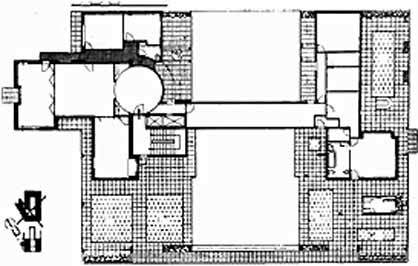 che raccorda i due blocchi. È uno schema ingegnoso che crea una interessante spazialità.