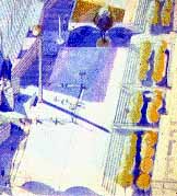 trattato con le sovrapposizioni tipiche del suo registro espressivo e un interno scandito da un sistema di mura parallele che alternandosi