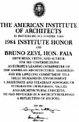 che sono state scritte su Zevi, una delle più giuste è la menzione alla sua elezione a Fellow dell'American Institute of Architects