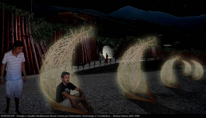 Questo contesto teorico e applicativo è stato indirizzato nella situazione utbana della città di Gioiosa Marea, sulla corte tirrenica siciliana esattamente di fronte alle isole Eolie: una condizione urbana e territoriale quella di Gioiosa che è caratterizzata da grandi risorse e poca attenzione progettuale, immense bellezze e scarsezza di sensibilità e inciusività progettuale. Gioiosa è luogo di squilibri e anche di fortissime energie: squilibri tra bellezza paesaggistica, storia e archeologia, da una parte, e pochezza della attuale condizione urbana ed architettonica e crescente degrado dell'ambiente dall'altro. Il workshop - che si inserisce nel filone di ricerche del Sicily lab che ha per titolo "Energie e squilibri mediterranei. Nuove forme per l'information technology e l'architettura" - si occupa di progettazione contemporanea intesa in una "estensione" che va dal design ai progetti di installazione, dai progetti architettonici a quelli di design urbano. E' un'idea "soft" di progetto che si muove verso una leggerezza del progetto e l'intelligenza creativa dell'azione. I progetti si concentrano su temi innovativi, con particolare attenzione a situazioni difficili estreme e squilibrate. Cioè a gran parte della situazione "reale" della progettazione contemporanea, in particolarte nel Sud. L' Information technology per questa ricerca non è un'aggiunta a situazioni di lusso, ma è considerata la strada maestra per affrontare progettualmente le contraddizioni del reale. "Energie e squilibri mediterranei. Nuove forme per l'Information Technology e l'Architettura" vuole dire lavorare con coscienza critica a temi nuovi per contribuire a cambiare lo statuto stesso delle disciplina. Almeno in parte, almeno per gradi, con operazione di "plug-in" capaci di innestare reazioni vitali e positive.