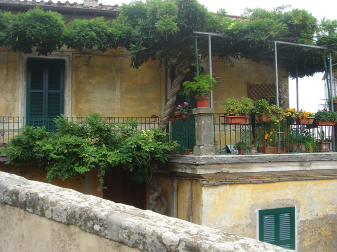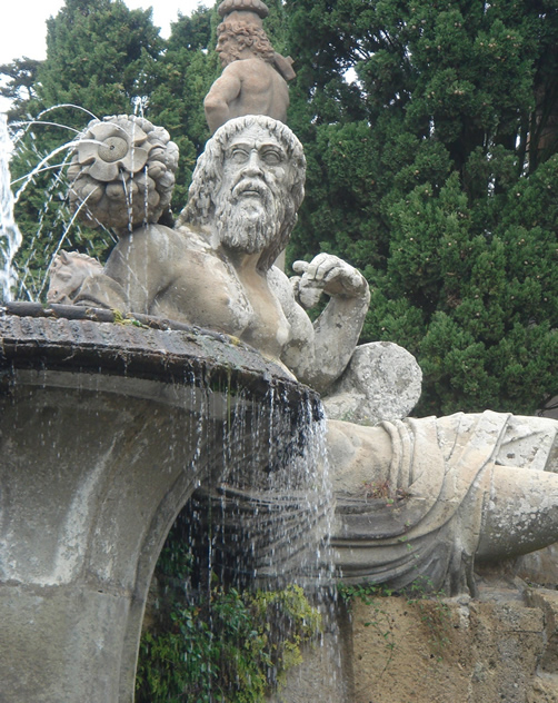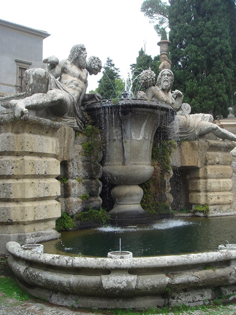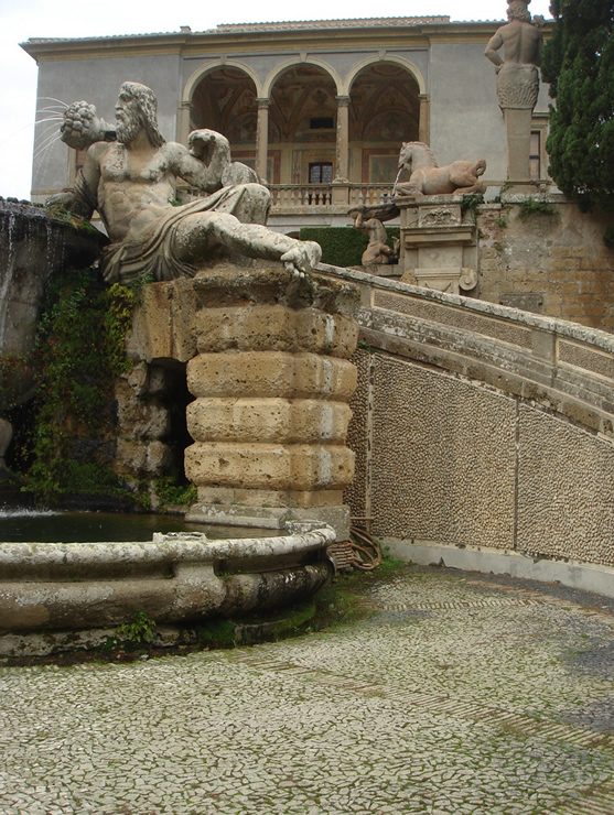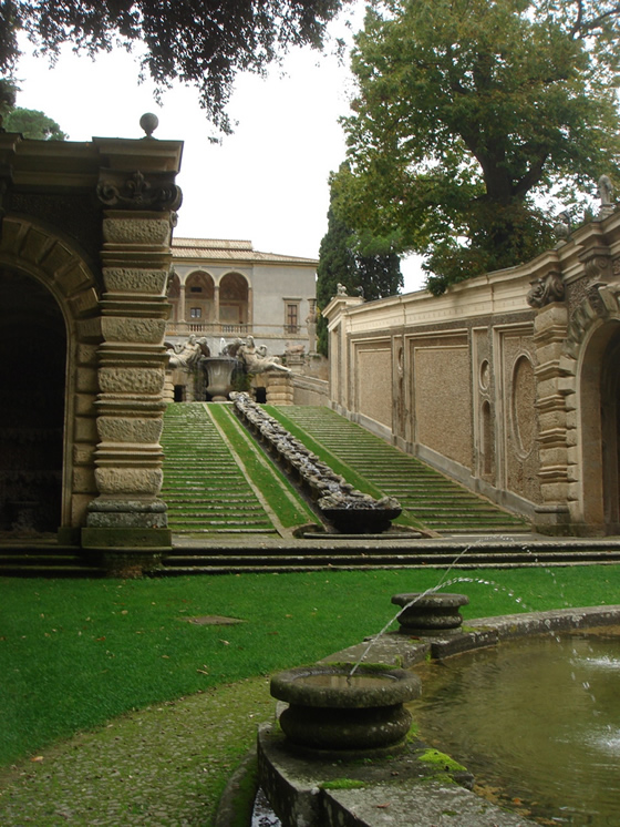 One key stone example, is the Farnese gardens in Caprarola (near Rome). In this case architect Giacomo del Duca developed an advanced system of hybridization between natural elements (gardens, vegetation, slope and above all water), artificial elements (wall, viaducts, retaining walls and fountains) and elements of symbolic nature and decoration. This example as well as other contemporary ones (such as the Garden of Bomarzo) opened up the idea of hybridization in the treatment of land and vegetation together with space and architecture.